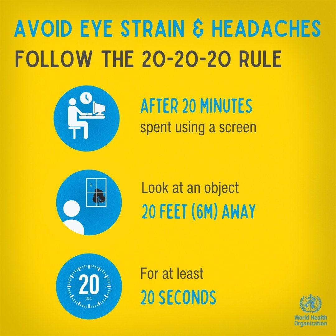 Wichtig: Die Regel ersetzt keine umfassende Arbeitsplatzgestaltung, korrekte Beleuchtung oder eine augenärztliche Kontrolle.